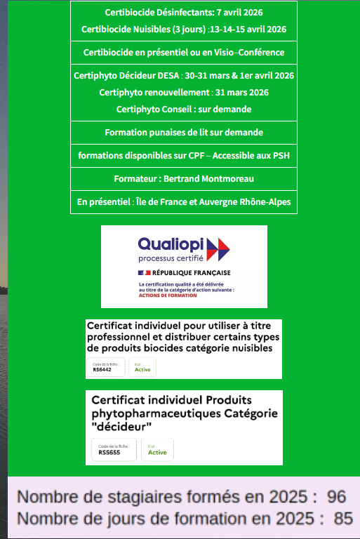 - Formations : Certiphyto et Certibiocide
